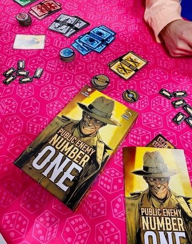 Durante il Festival International des Jeux a Cannes ho avuto l’occasione di giocare a "Public Enemy Number One", un gioco che ti trasporta nel selvaggio West. Da 2 a 6 giocatori, circa 30 minuti di partita, e un solo obiettivo: diventare il fuorilegge più ricercato! Per farlo, dovrai reclutare i migliori criminali delle quattro gang più temute del Far West e conquistare il titolo di numero uno.
